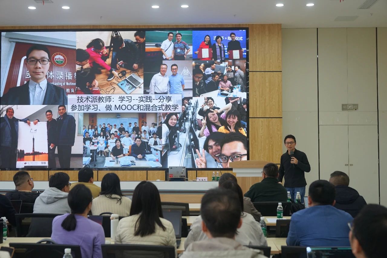 张翼然系统阐释了AI在教育领域的应用现状与发展趋势,指出AI在提升教学效率与学生创新能力等方面的重要价值。他通过典型案例演示,分享了如何利用AI工具在课件制作、教学设计、作业批阅等教学环节拓展教学边界、提升教学效果的经验。张翼然副教授谈到“人机协同”教育新范式,鼓励参会教师利用AI技术创设更具挑战性的学习任务,从而放大学生思考力,激发学生深度学习能力与创新潜能。